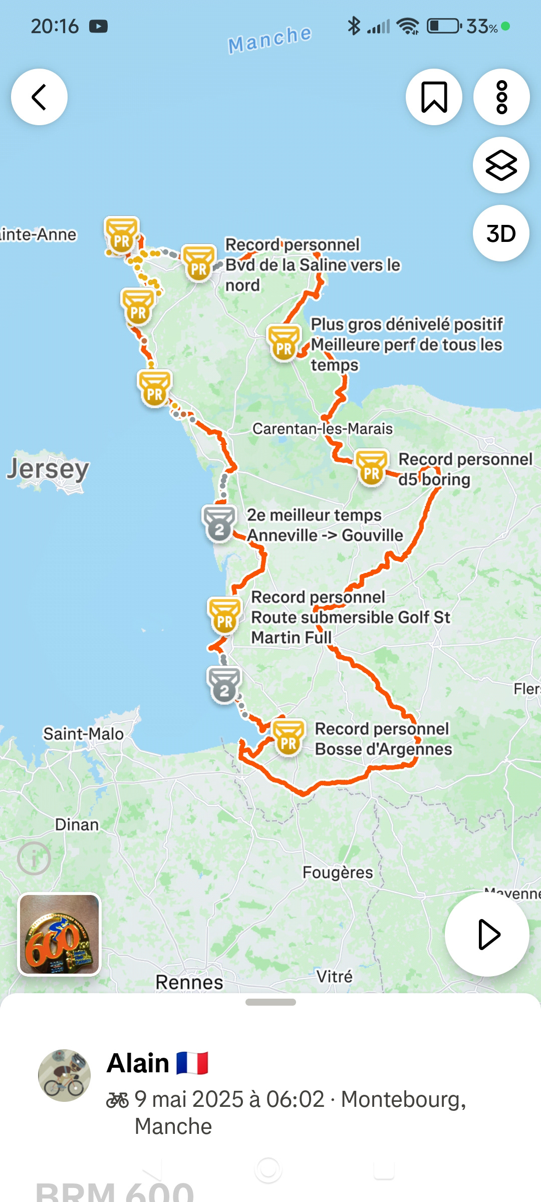 Cette année, tu as participé au BRM 600 ( Brevet des randonneurs mondiaux). Tu nous racontes ?